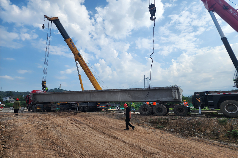 該項目是路橋集團承建的重點項目之一,始于南河污水處理廠,起點接國道108線,終點接省道205線,起止全長1.933km。周家窩中橋是該項目的重要節點工程,全長87.08米,該橋共計16片預制箱梁,預計8月15日完成所有箱梁架設。