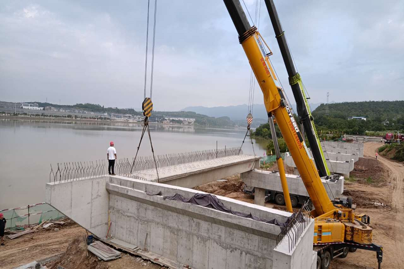 8月14日清晨,伴隨著陣陣機械轟鳴聲,省道205線廣元至昭化鎮公路改建工程首片預制箱梁安全、平穩地架設在橋墩上,標志著該項目建設正式進入橋梁上部結構施工階段,向主體工程建設提速、為早日建成通車的目標邁出了堅實的一步。